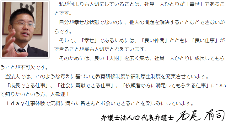 代表メッセージ|弁護士法人心 1day仕事体験サイト
